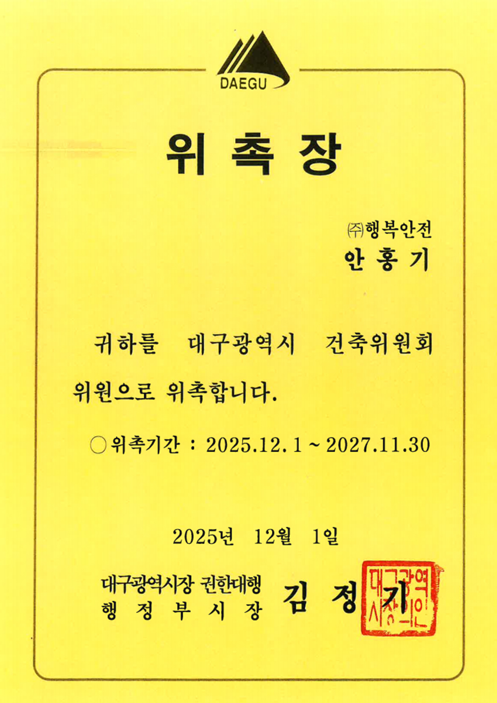 대구광역시 건축위원회 위촉장